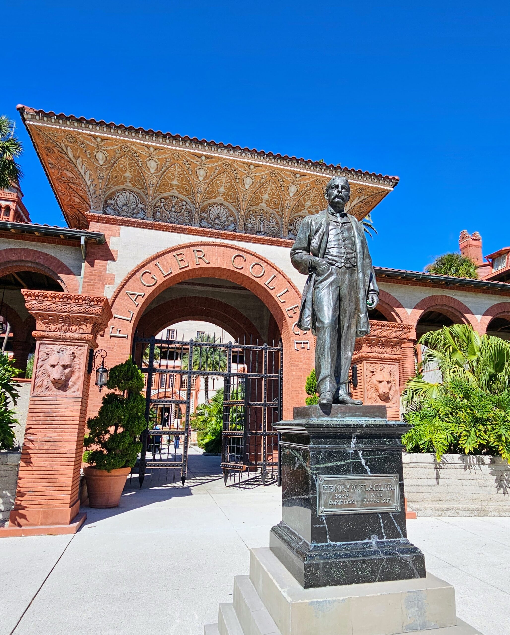 Our guide on our first day advised that Flagler College offers tours of the main building that are led by students, so we booked this on our last day. We were a bit early so I took a few photos of the impressive former Ponce de Leon Hotel, built by Henry Flagler in 1888. Flagler made his riches as the co-founder of Standard Oil (along with John D. Rockefeller). That’s Henry right up front!