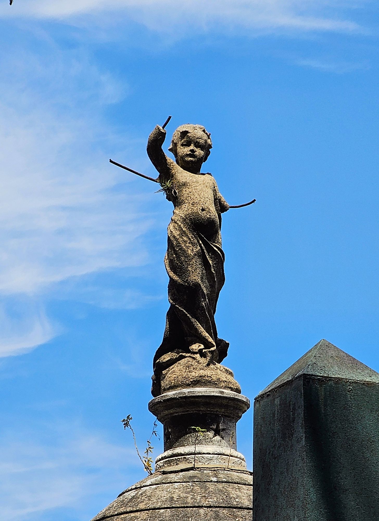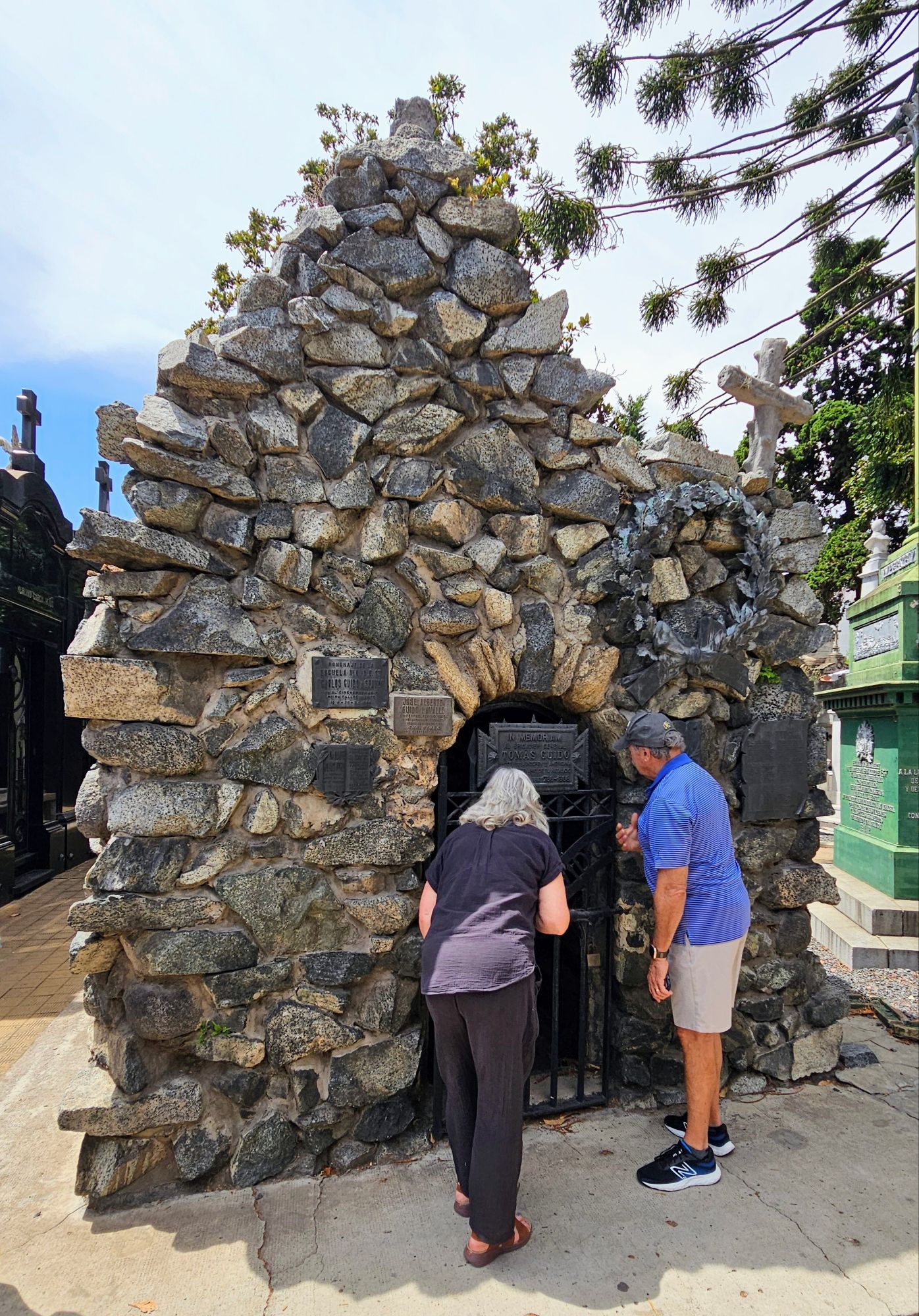 Recoleta is filled with mausoleums and vaults of various sizes, indicating the wealth of those buried here. It reminded us of a massive cemetery we visited in Milan. This monument is for Admiral Guillermo Brown, an Irish-born naval officer who became the father of the Argentine Navy. The green column honors his Irish heritage. Note the sailing ship at the top of the memorial. Very cool!