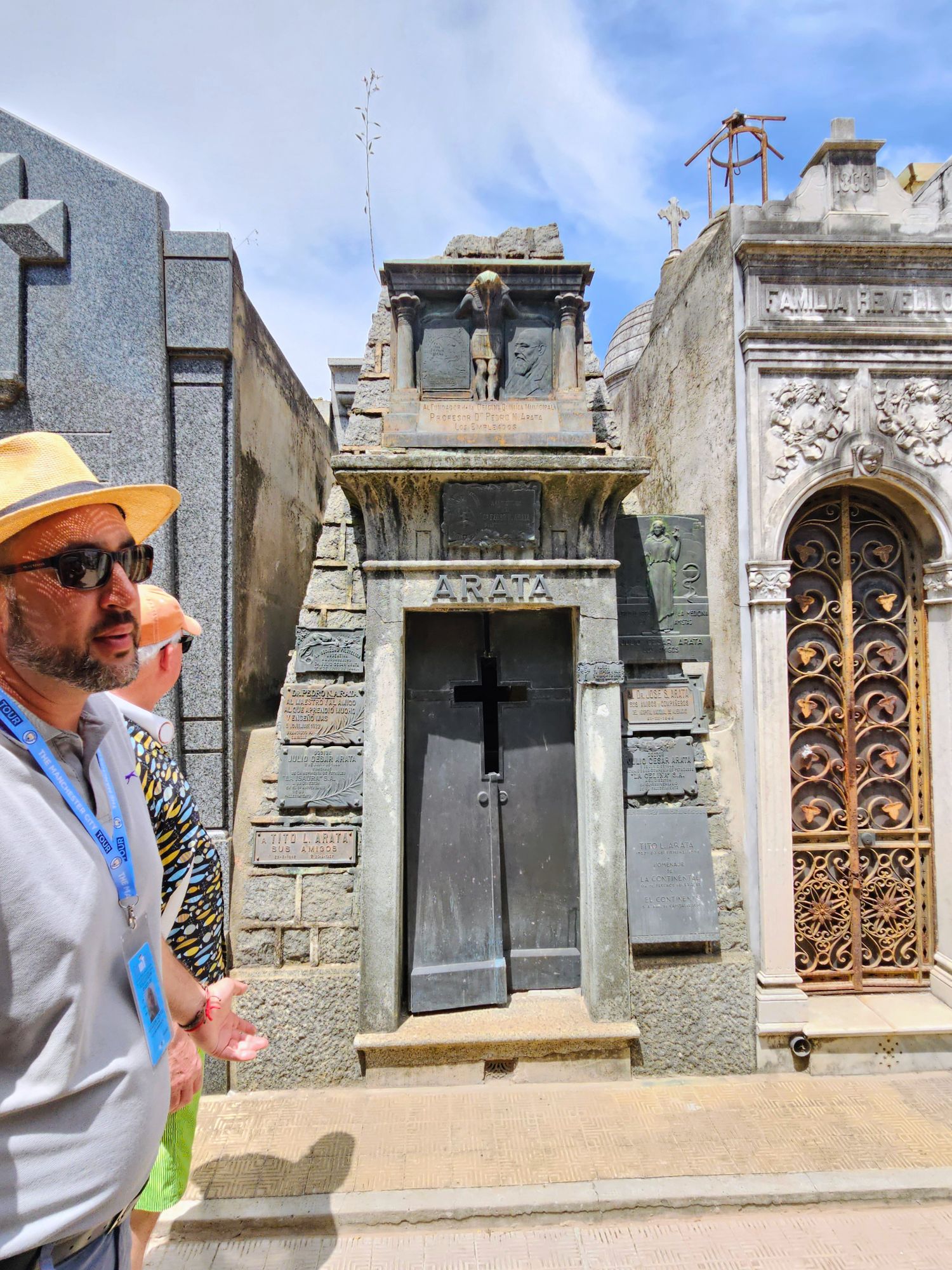 We then entered Recoleta Cemetery. This massive cemetery opened in 1822, becoming the first public cemetery in Buenos Aires. On the left in this photo is the tomb of French military officer Colonel Federico Brandsen, who fought under Napoleon (when the French didn’t surrender at first blush) before moving to South America. He died for Argentina heroically while leading a charge in a battle against Brazil in 1827.