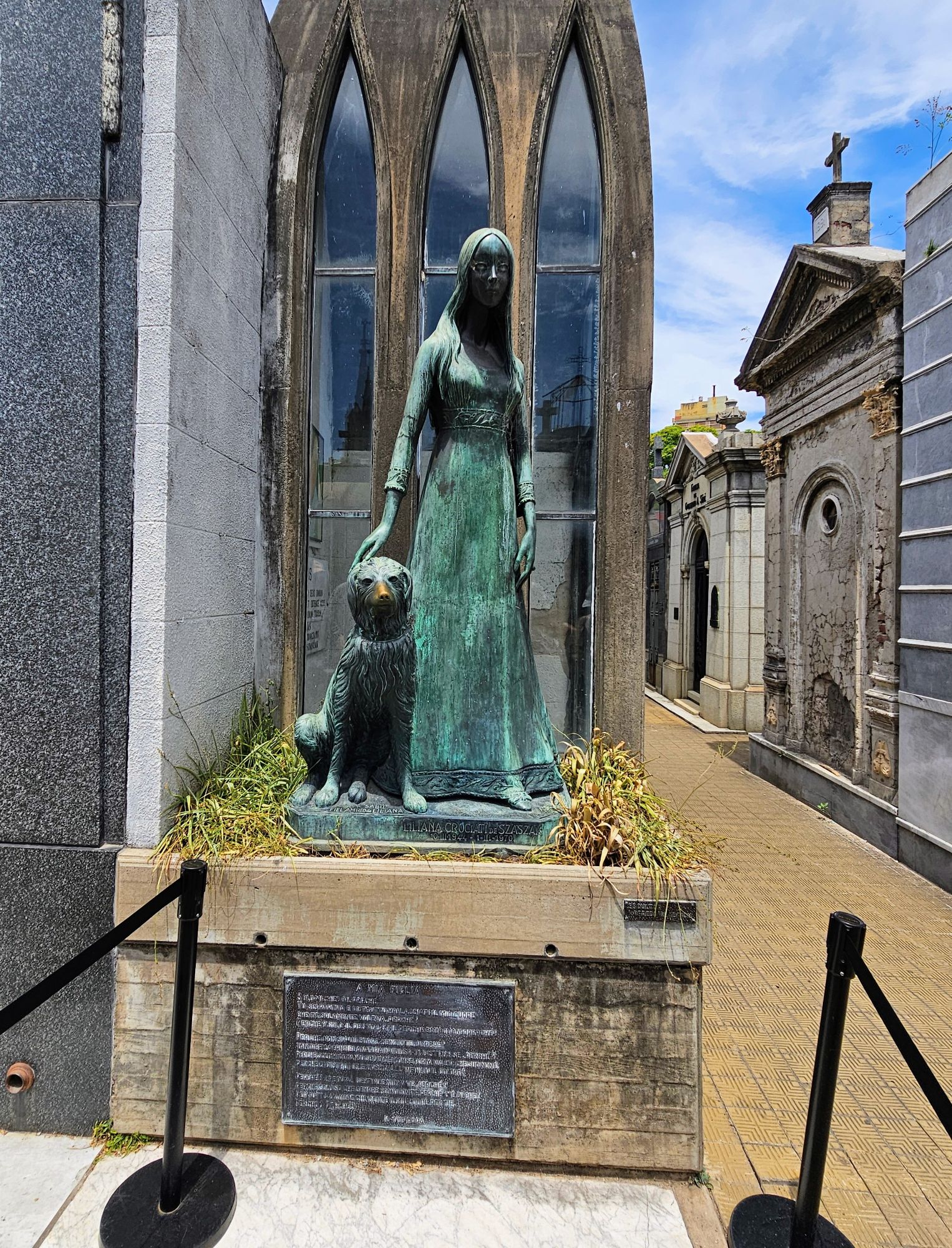 On the way out of the cemetery I was struck by this rather scary looking statue of a woman with her dog, where it appears people have been constantly touching the dogs nose.