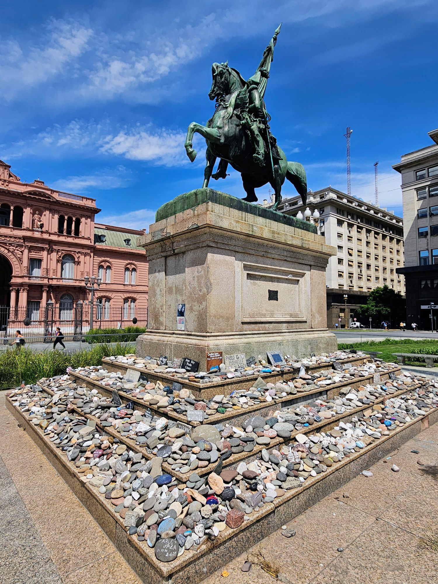 This statue of General Manuel Belgrano sits in front of Casa Rosada. The many stones placed here have hand painted names, dates and messages to honor loved ones lost during Covid-19. This was seen as a protest against the government and their handling of the Wuhan Flu. This became known as the “March of the Stones”. It appears pretty much everybody blew handling this shitshow!