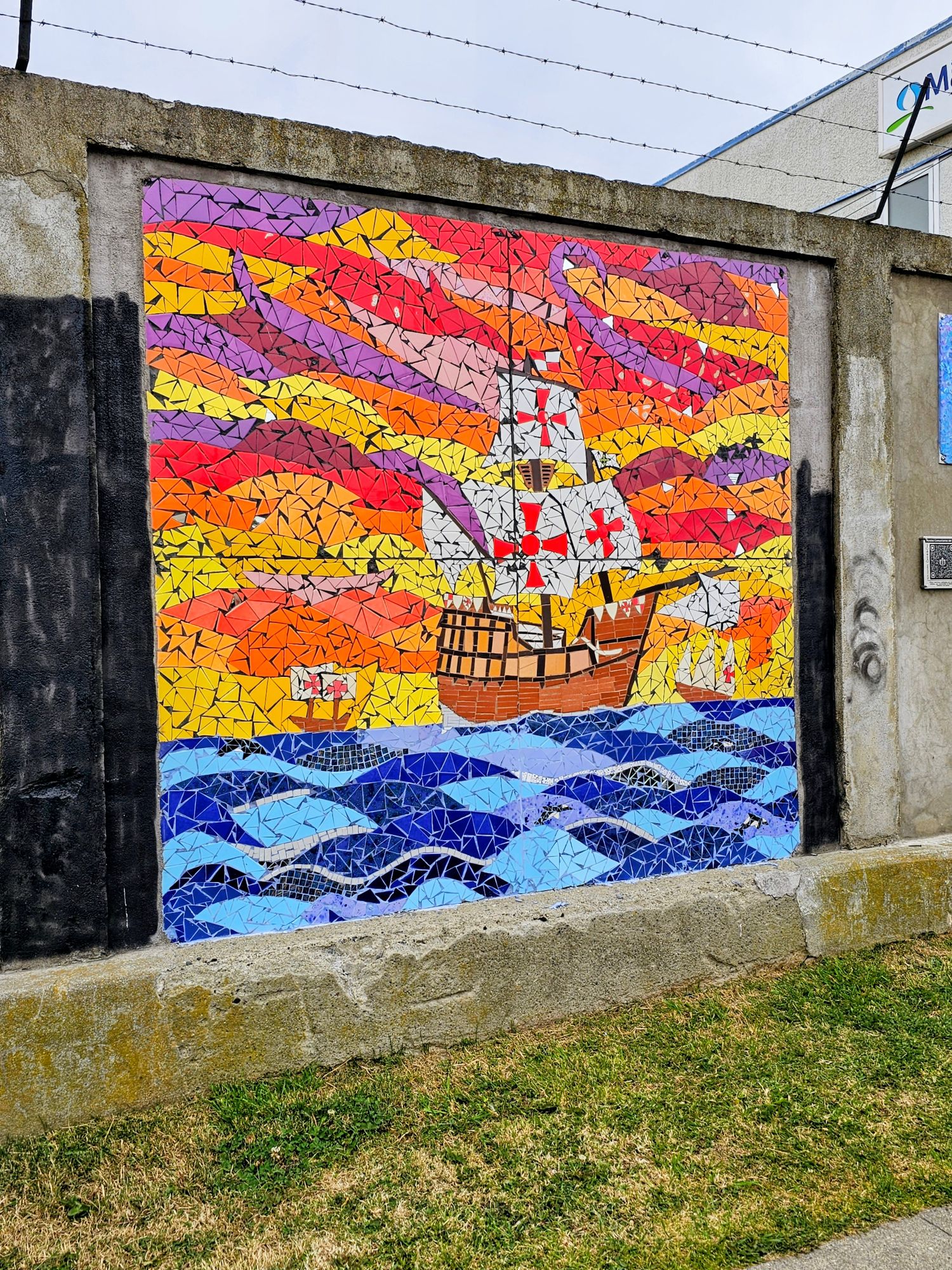 Not too far away, on a somewhat hidden street, is this beautiful set of mosaic murals! I only found this because I was scrolling on my phone while we were at the viewpoint. This should be a top destination if you already made your way up the hill! First up is Ferdinand Magellan’s ship in the strait.