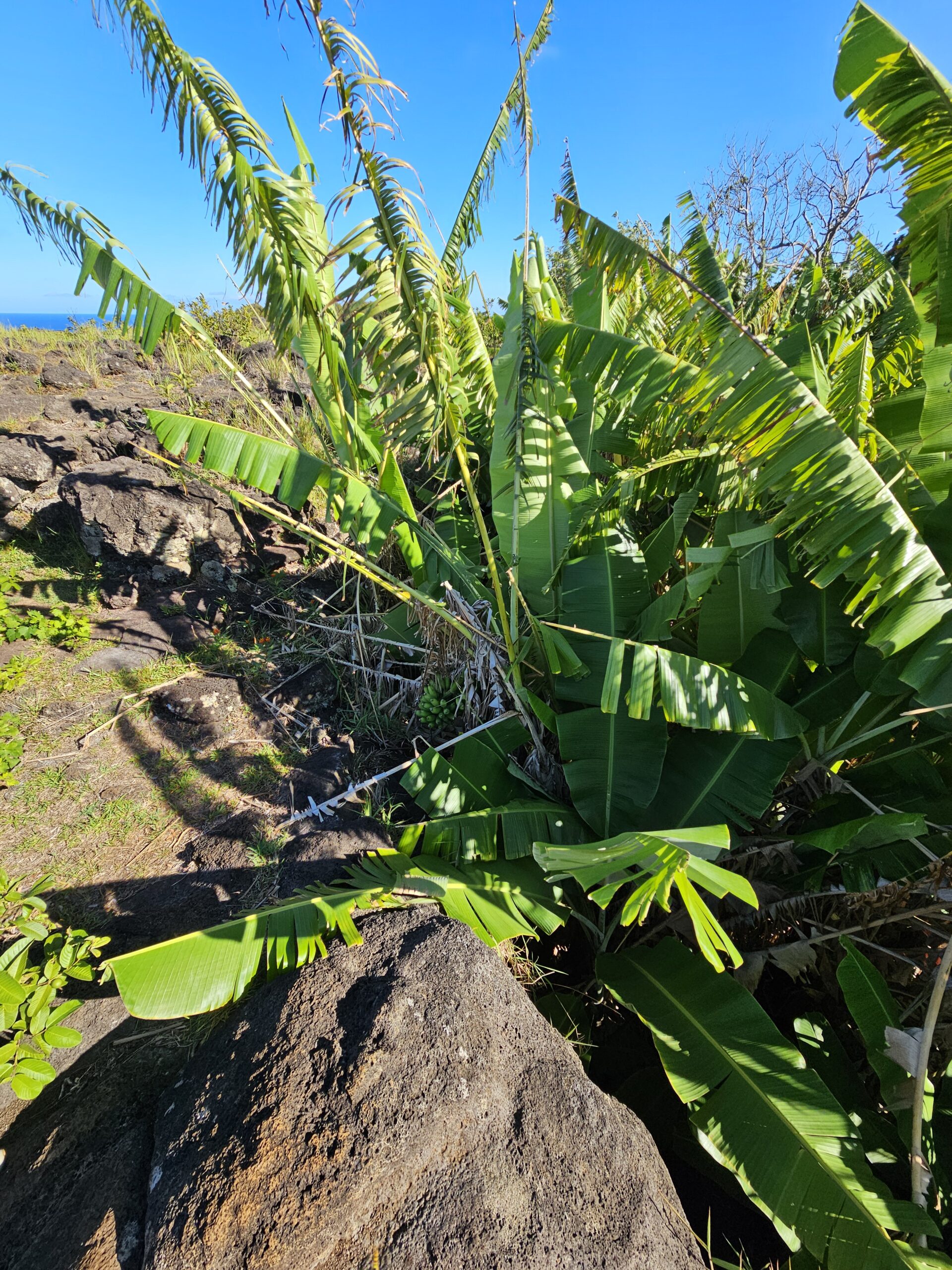 The main entrance to the caves is almost completely obscured by vegetation, including these banana trees.