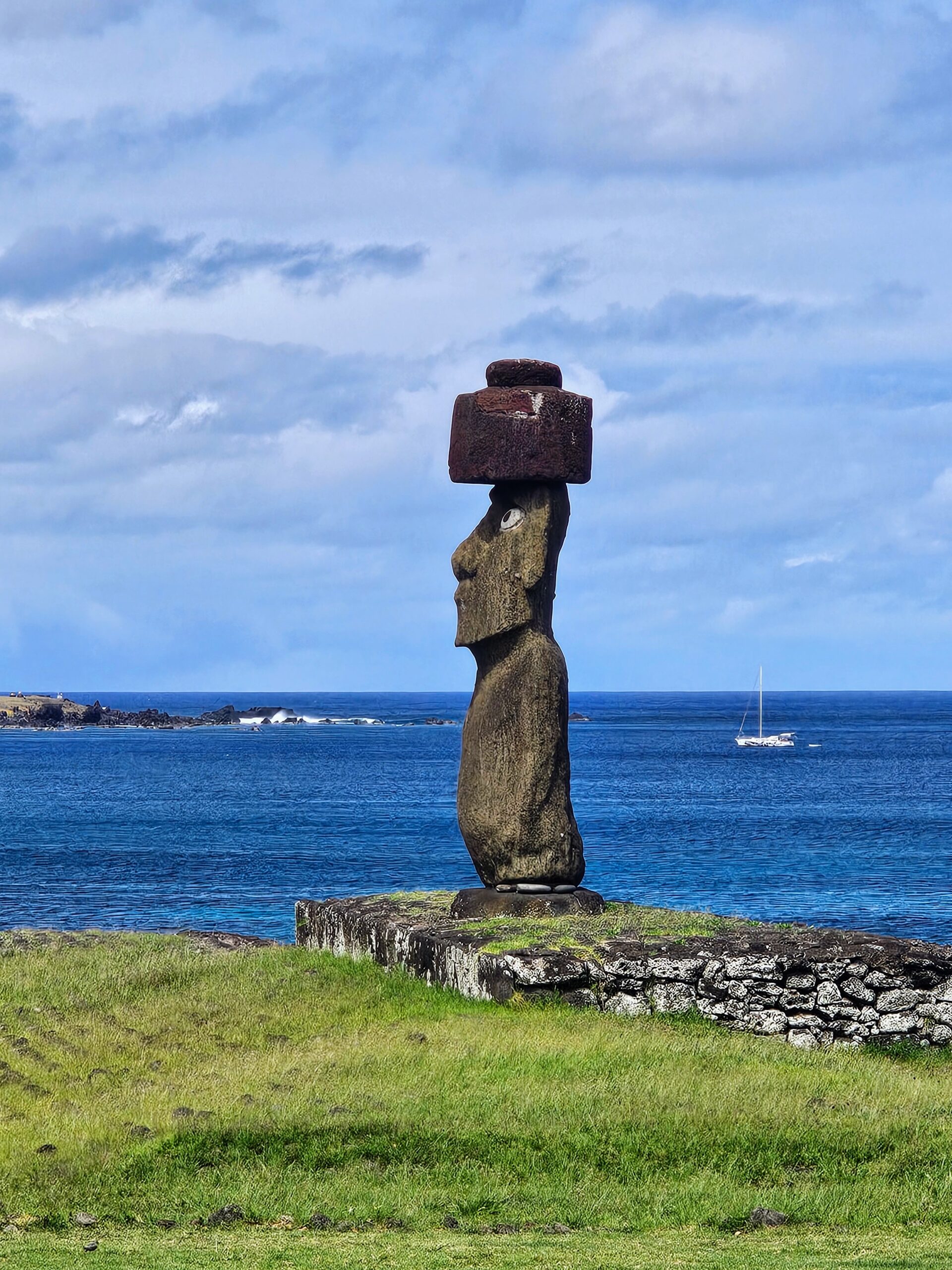 This moai is the only one on the island with the eyes restored. The eyes were made of cement versus the originals which were made of coral.