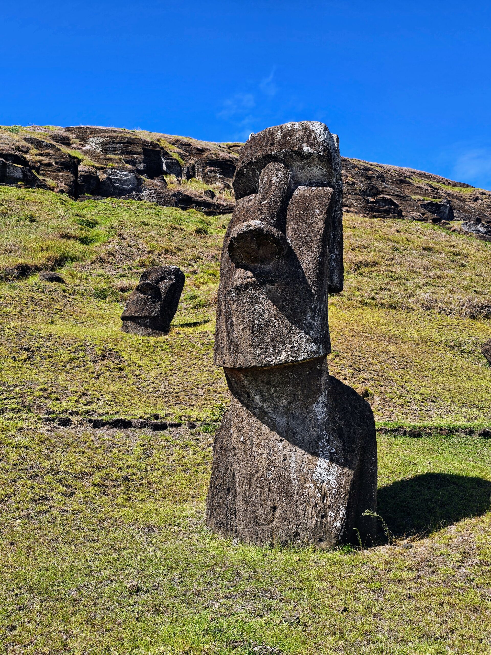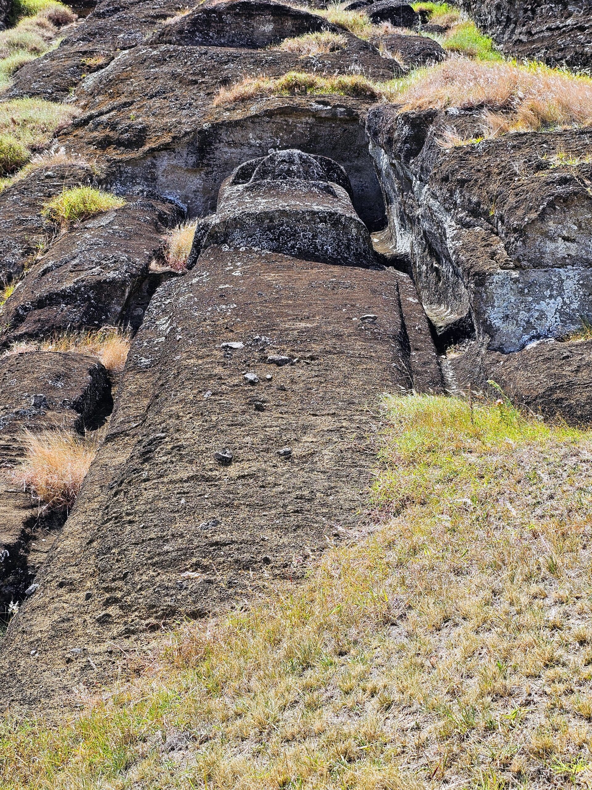 These moai on the slope of the quarry are actually complete, they have just been partially buried.