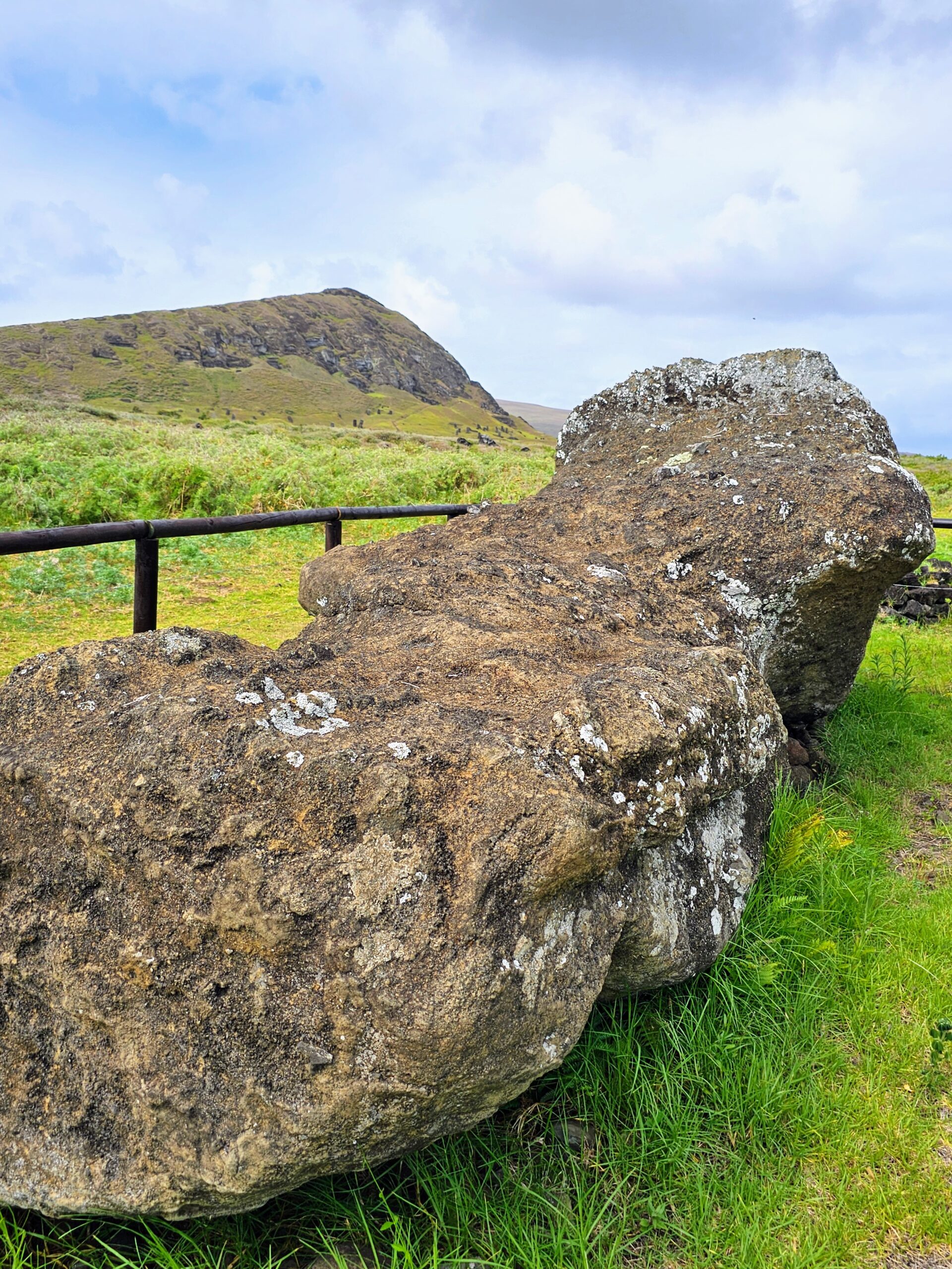 Our guide took us on a short hike leading away from the quarry, where there are several toppled moai laying on their face. Nobody is sure why they ended up here, but there is a thought that if they toppled in transport that they no longer held their “mana” and were abandoned.
