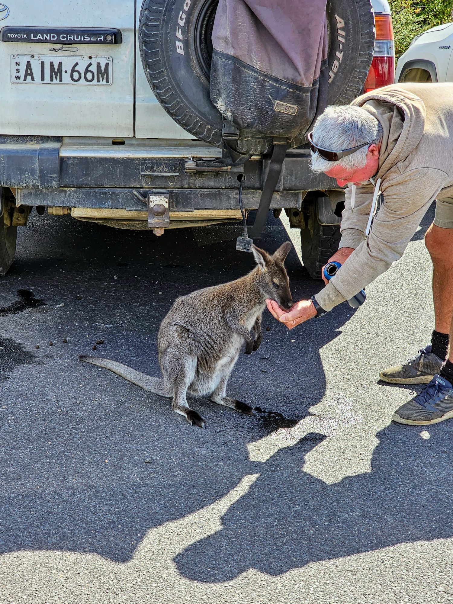 As we were leaving the parking lot we saw this Wallaby standing behind a car. Paul told the guy in this photo that he was thirsty, so this guy started pouring his water bottle into his hand, and the Wallaby drank every drop he could! The drought here is real! Our hearts broke for the little guy.