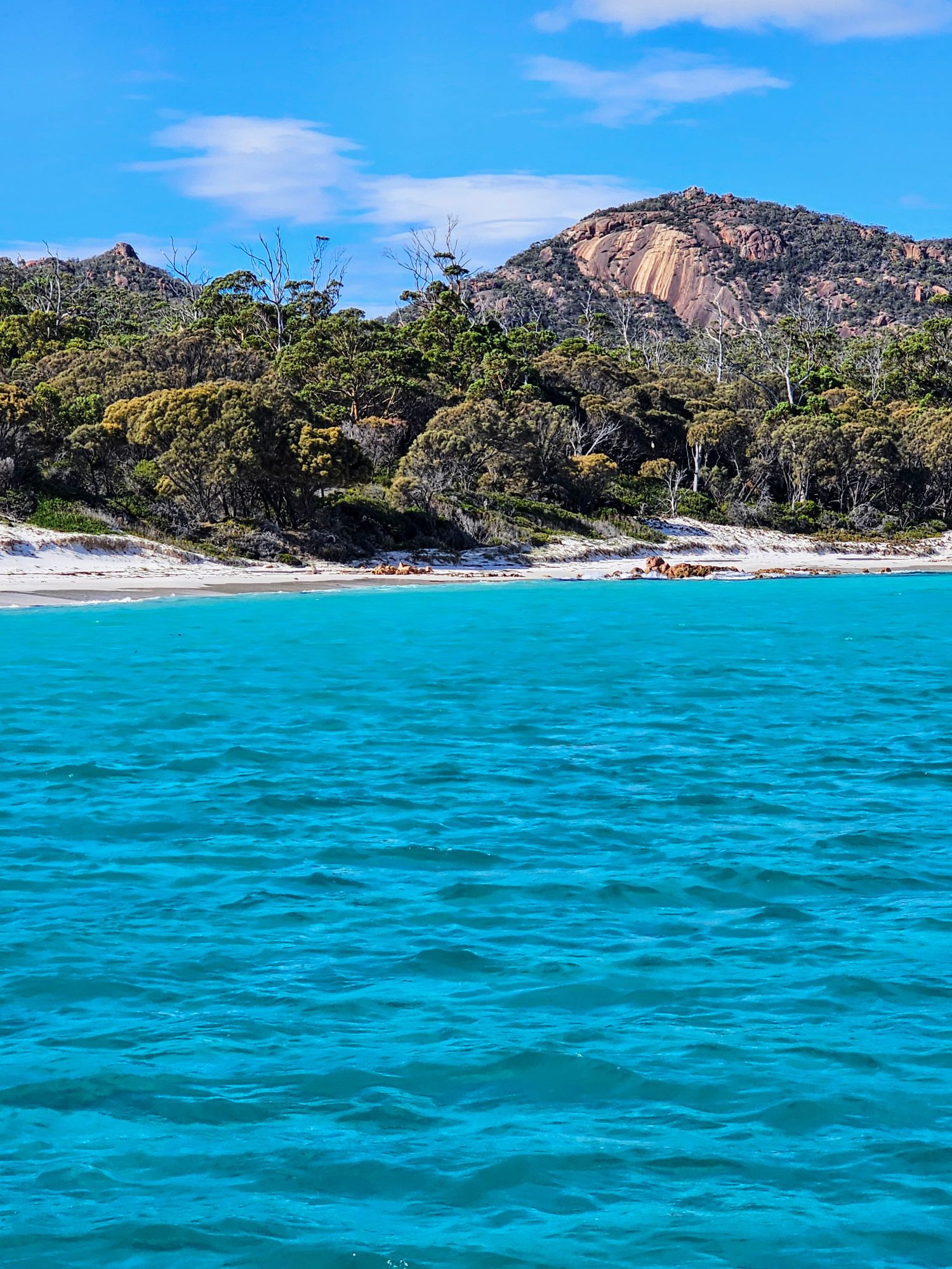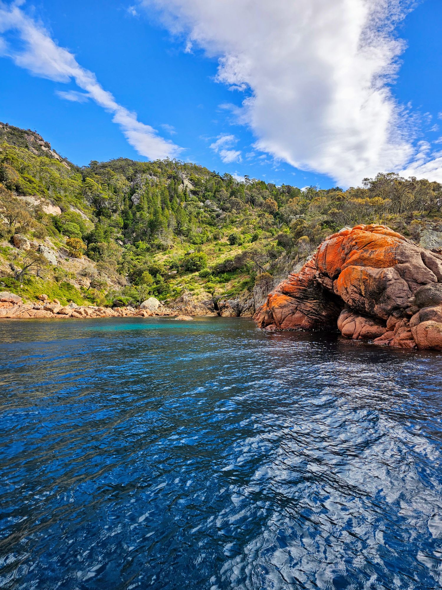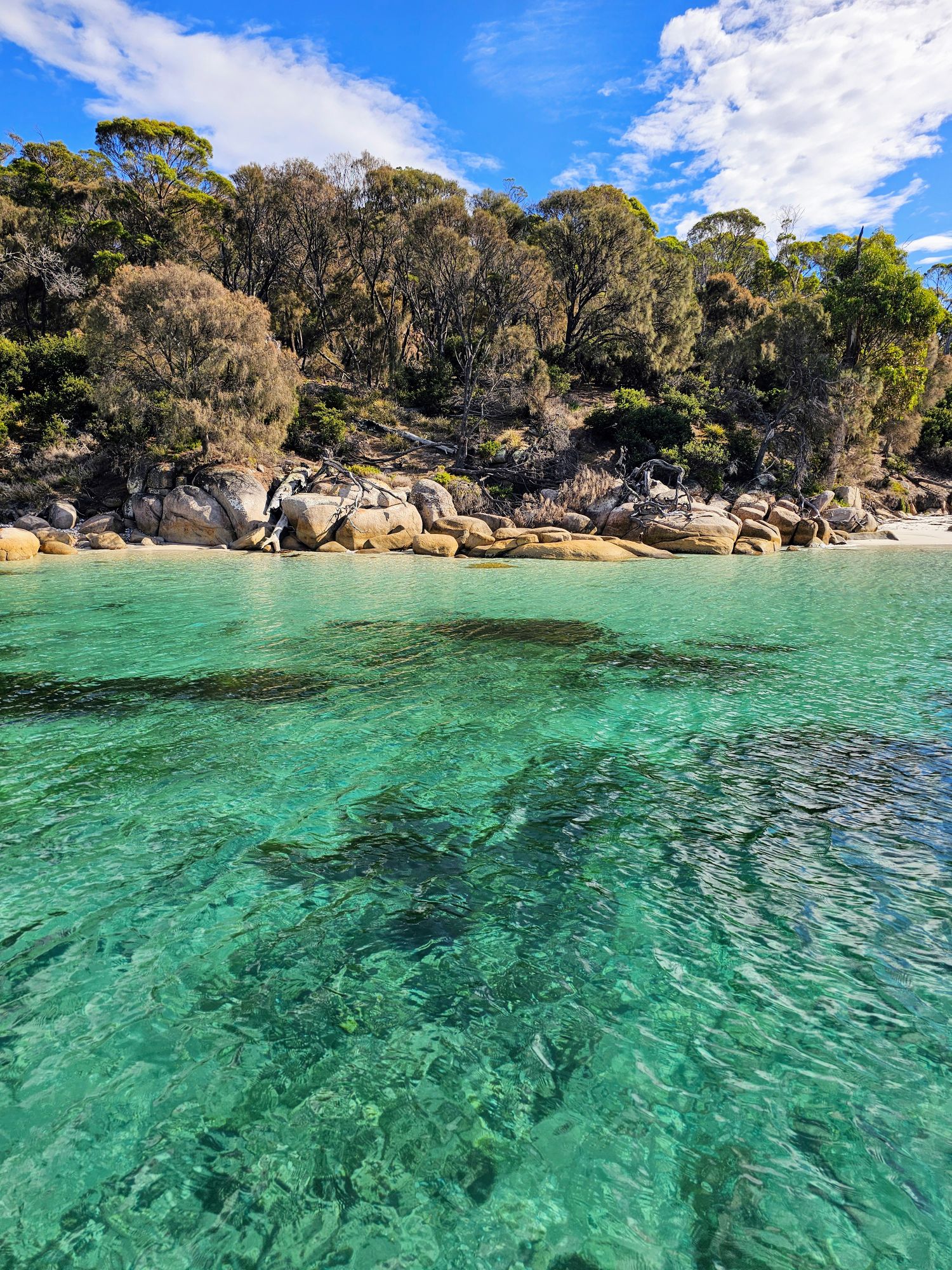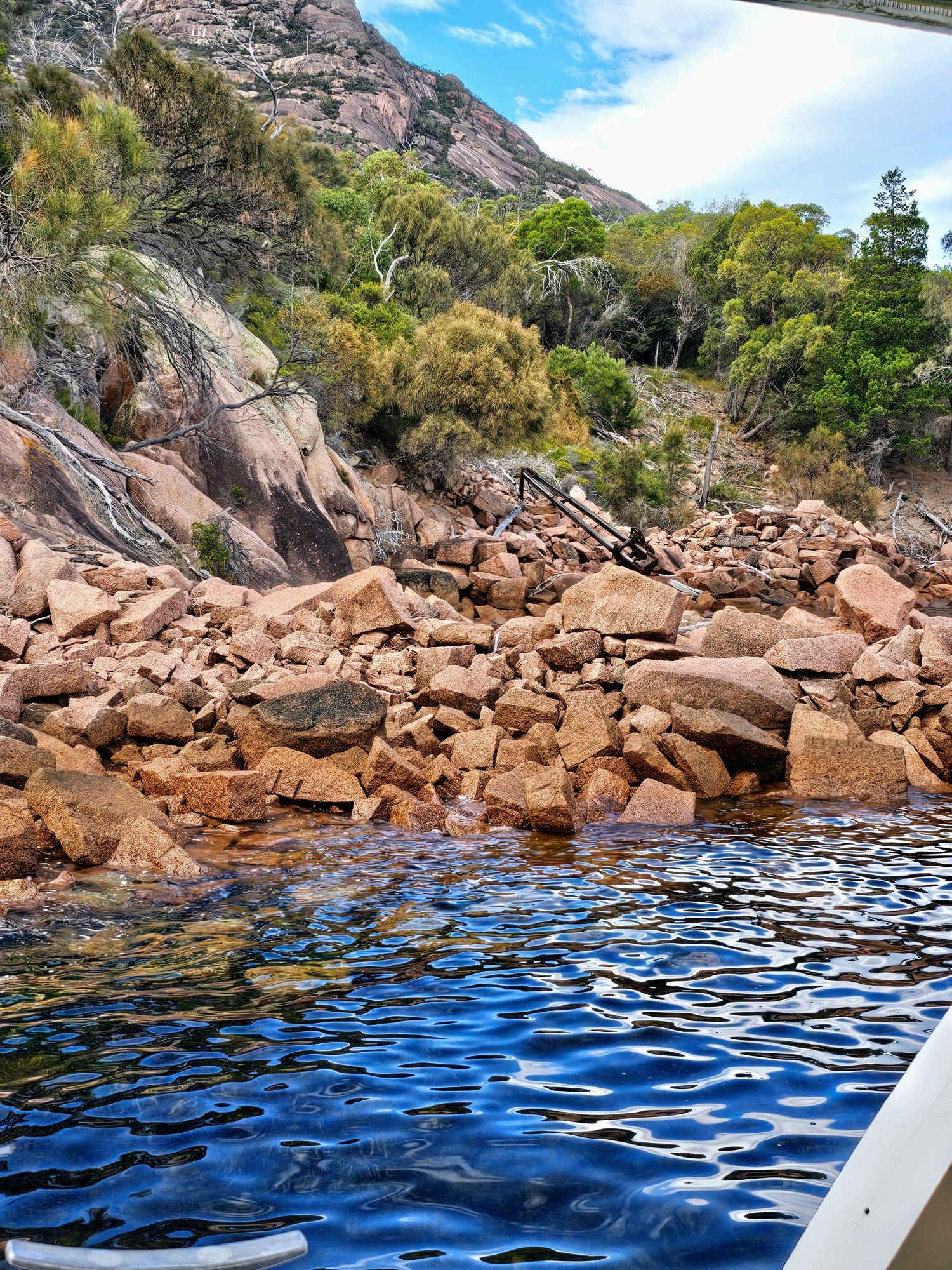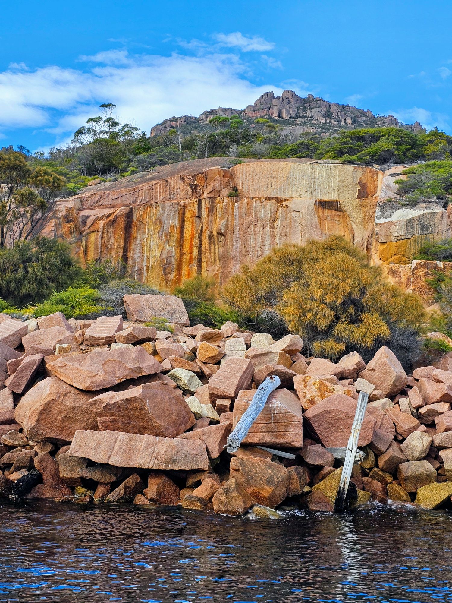 One last shot off Schouten Island. Those rocks on the shoreline look like a boat launch or an old building foundation, but they are entirely natural.