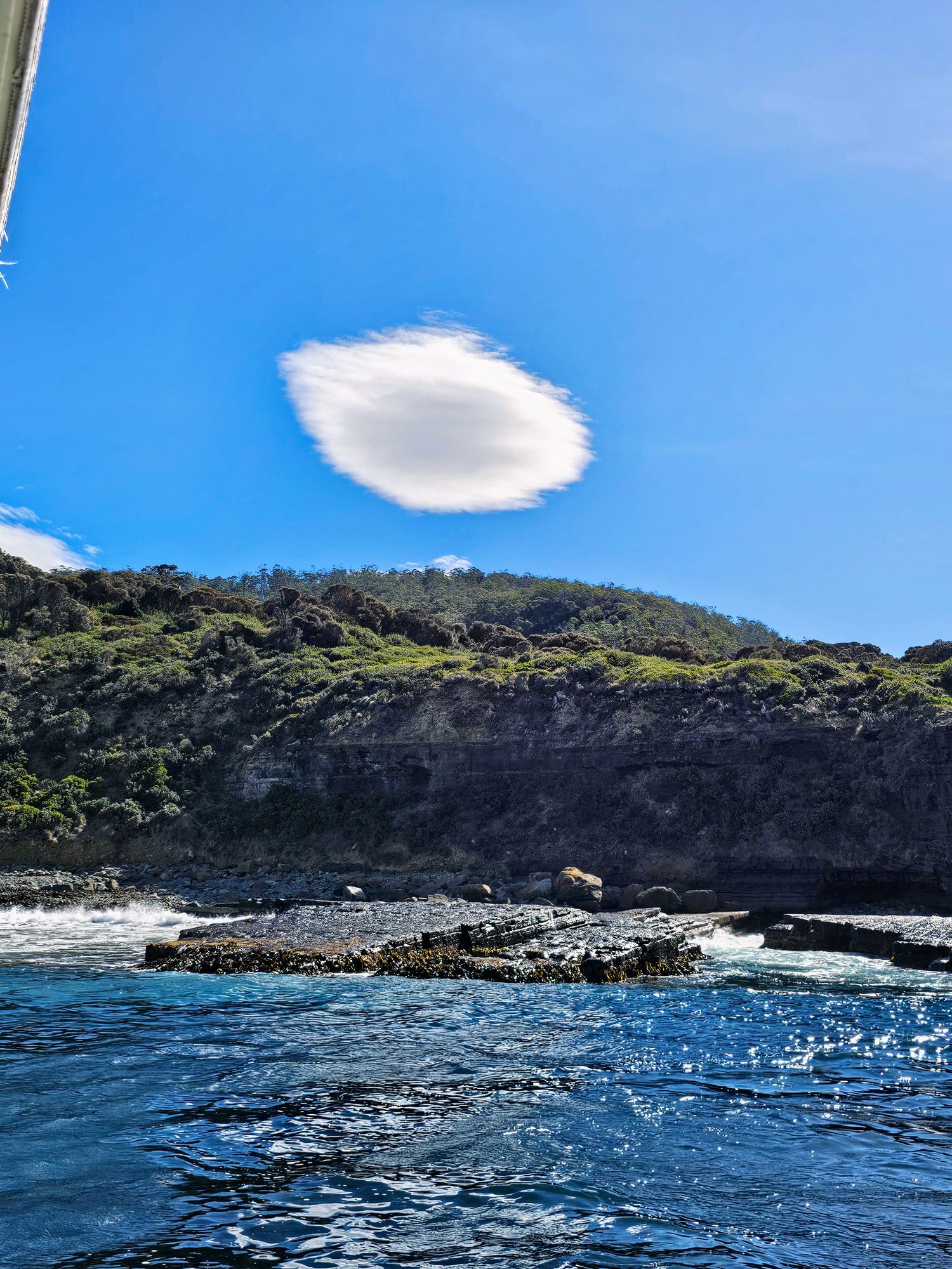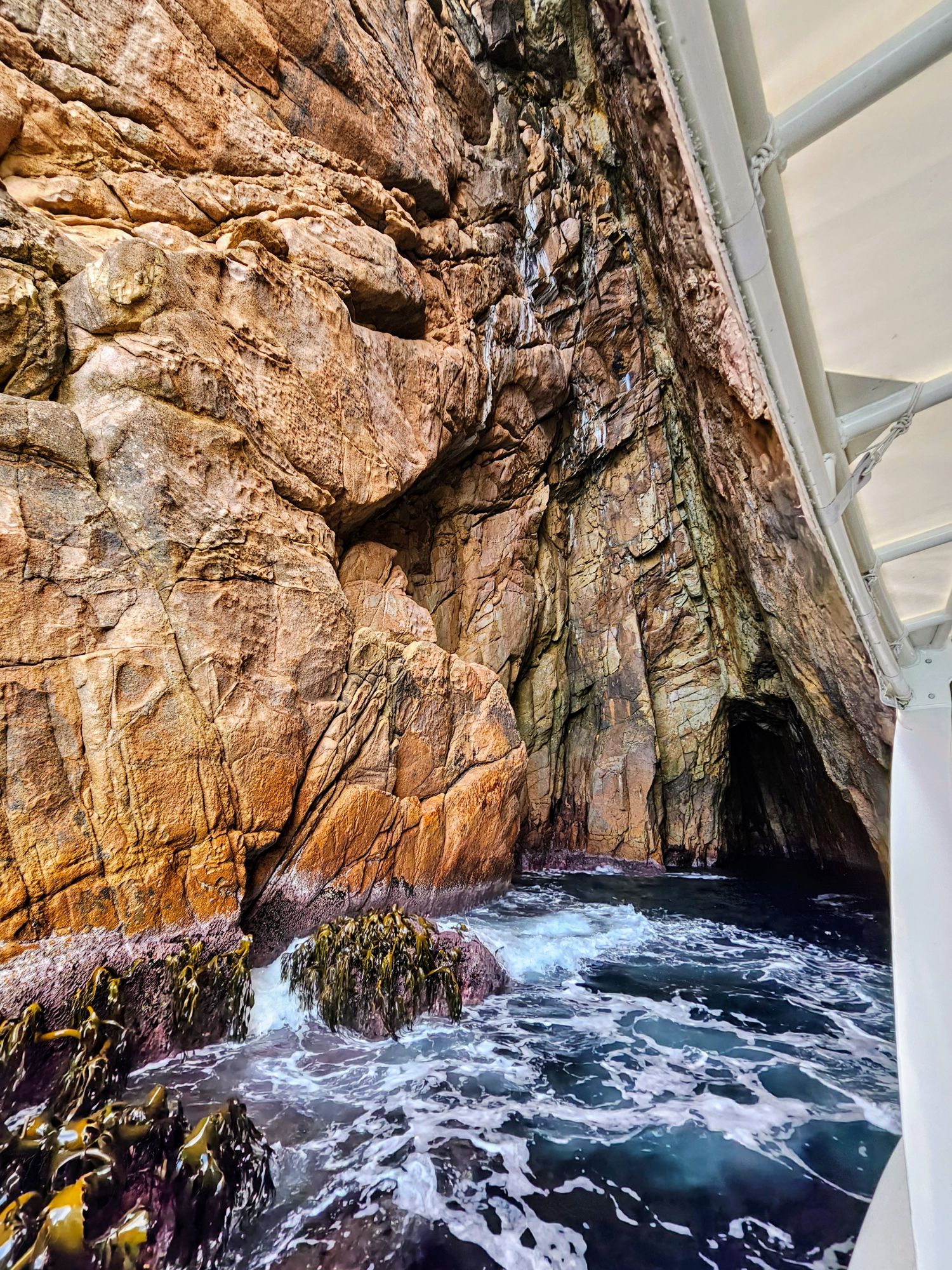 Our cruise circled Schouten Island to the south of Cole’s Bay. The cliffs here are quite impressive. We even pulled part way into a sea cave so our captain could show off his seamanship skills.