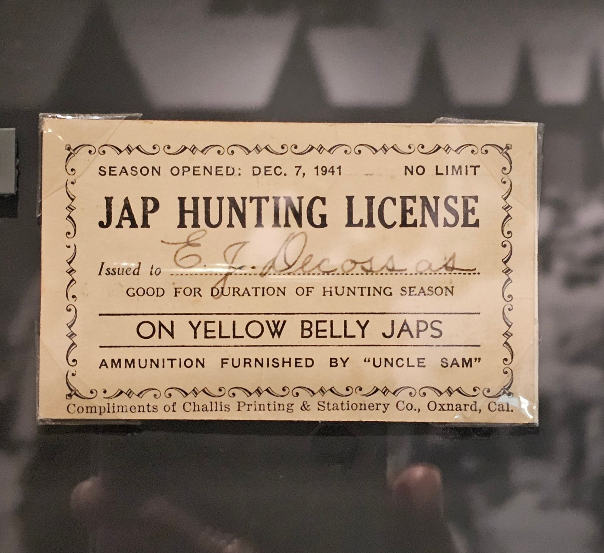 Another interesting item on display was this “Jap Hunting License”, a novelty item that was quite popular shortly after the attack on Pearl Harbor, and was actually used as a promotional item for several companies at the time, this one from a printing company in Oxnard, CA.