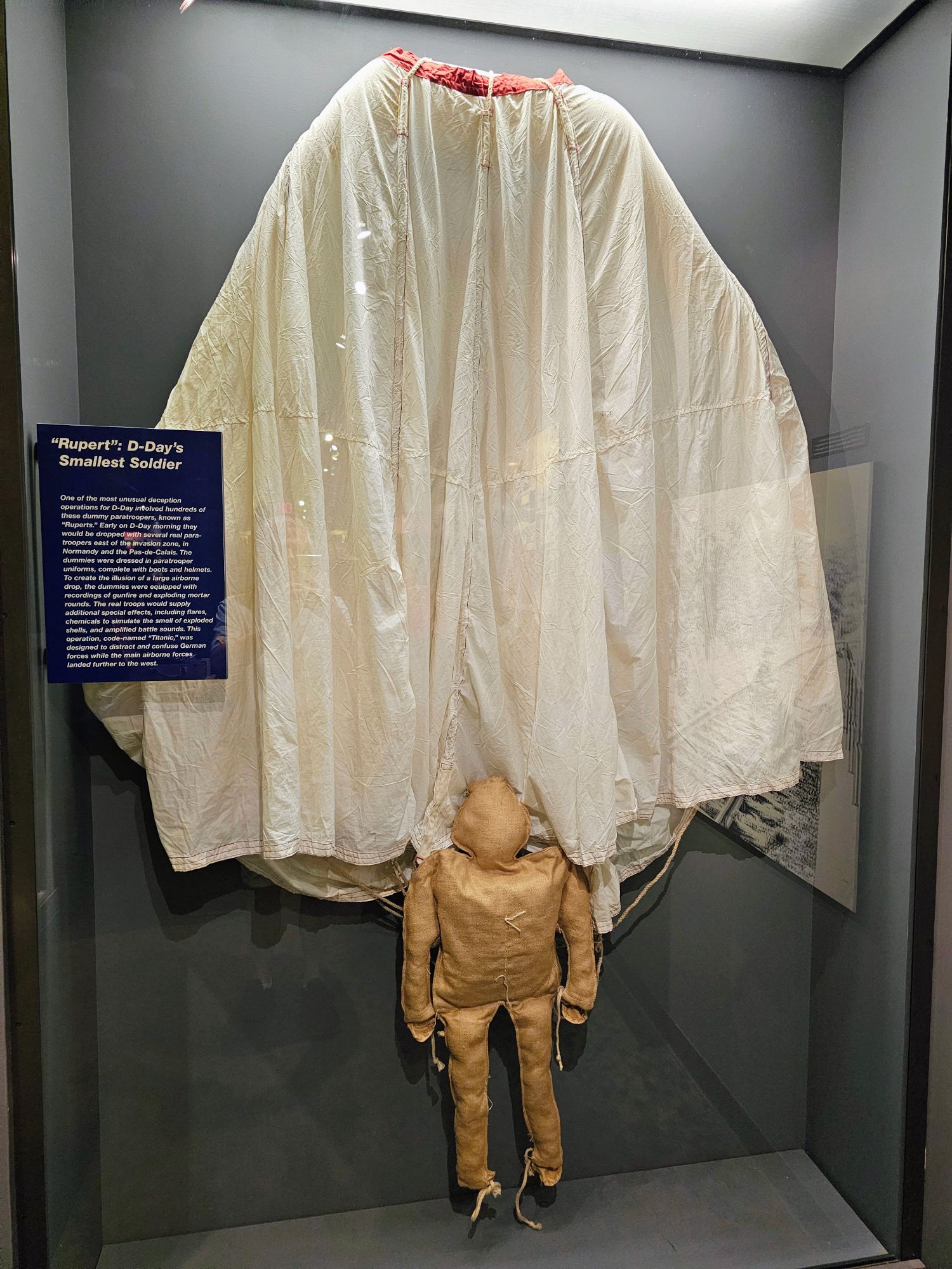 The museum is full of interesting items, this one being “Rupert”, a dummy paratrooper that was dropped in various locations to throw off the Nazi’s as to the actual focus of Normandy. These were dropped complete with uniforms, boots and helmets, as well as with recordings of gunfire and exploding mortar rounds. A few actual paratroopers would drop with them and set off other effects such as flares and chemicals to simulate the smell of exploded shells. The allies really pulled out all the stops to ensure the Nazi’s had no idea where D-Day was actually occurring.