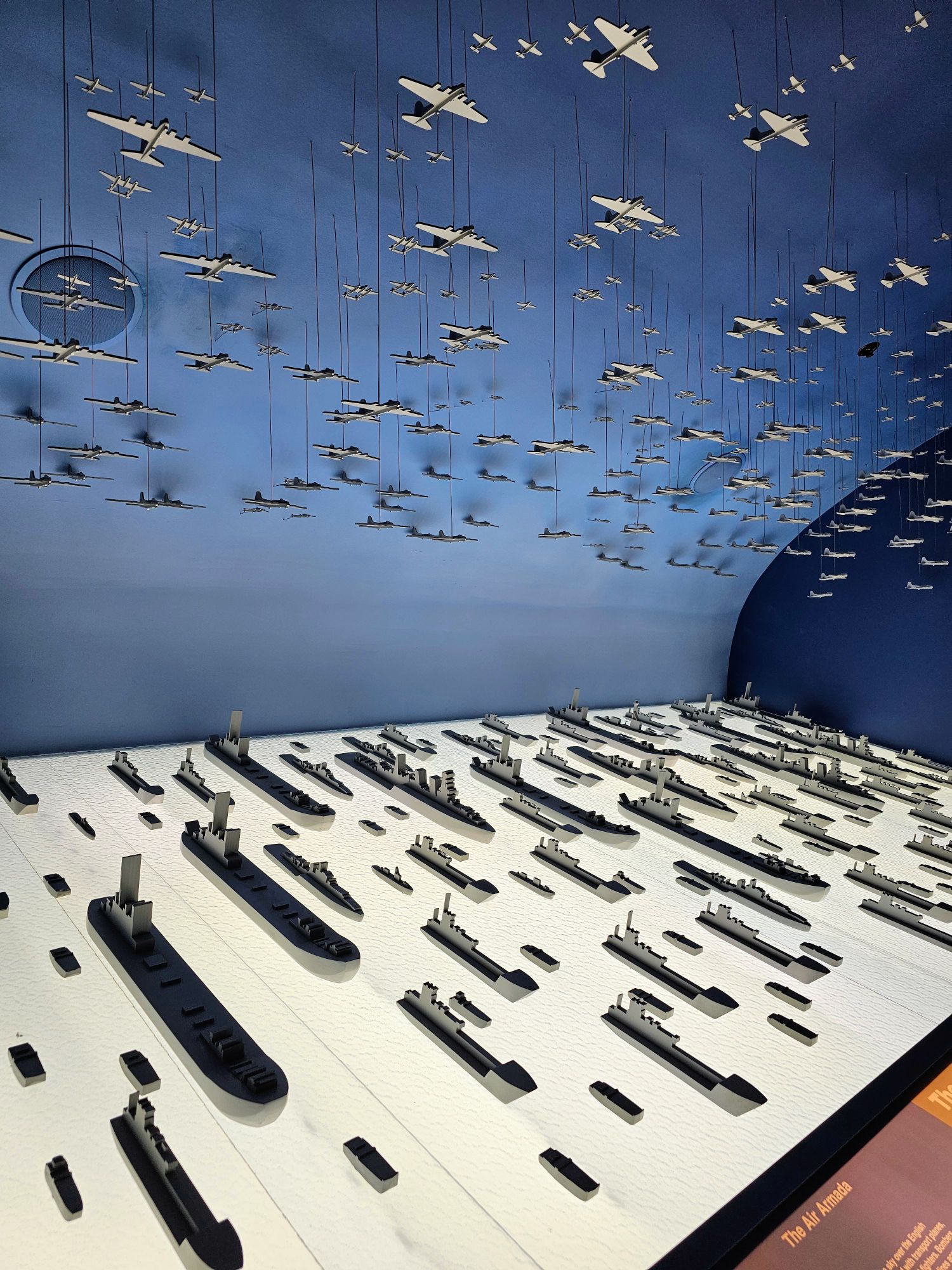 This diorama depicts the volume of aircraft and vessels involved in the D-Day invasion on June 6, 1944.
