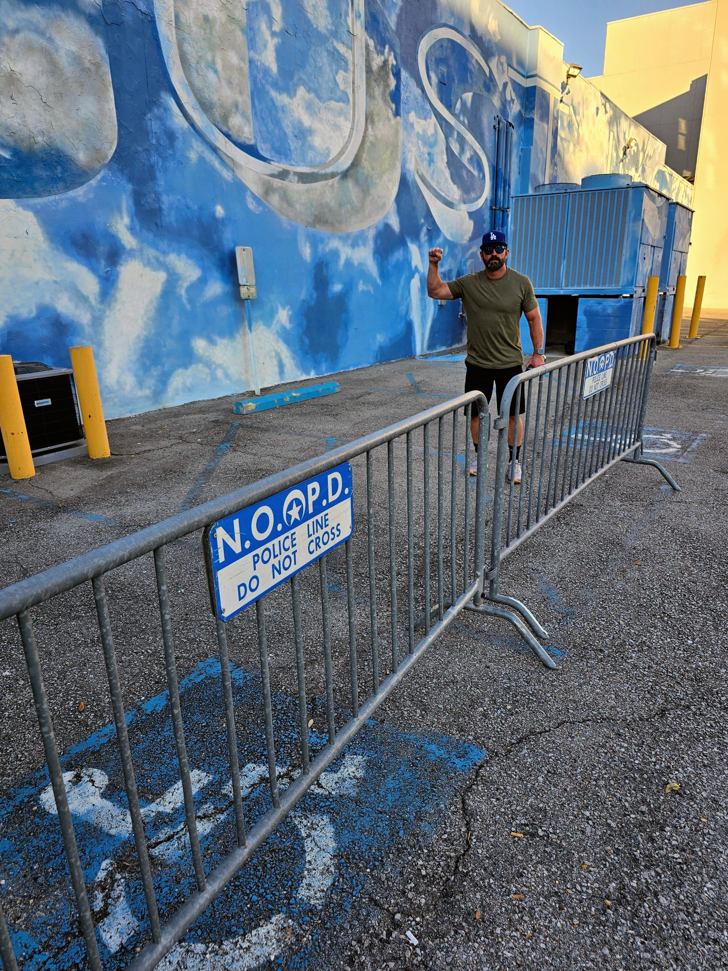On the walk back John decided he wanted to be photographed behind a “Police Line”. Here you go John! Power to the people!