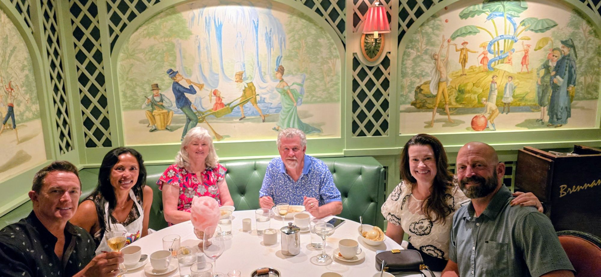 A shot of us at dinner. The interior of Brennan’s is beautiful, particularly when it’s being graced by this group!