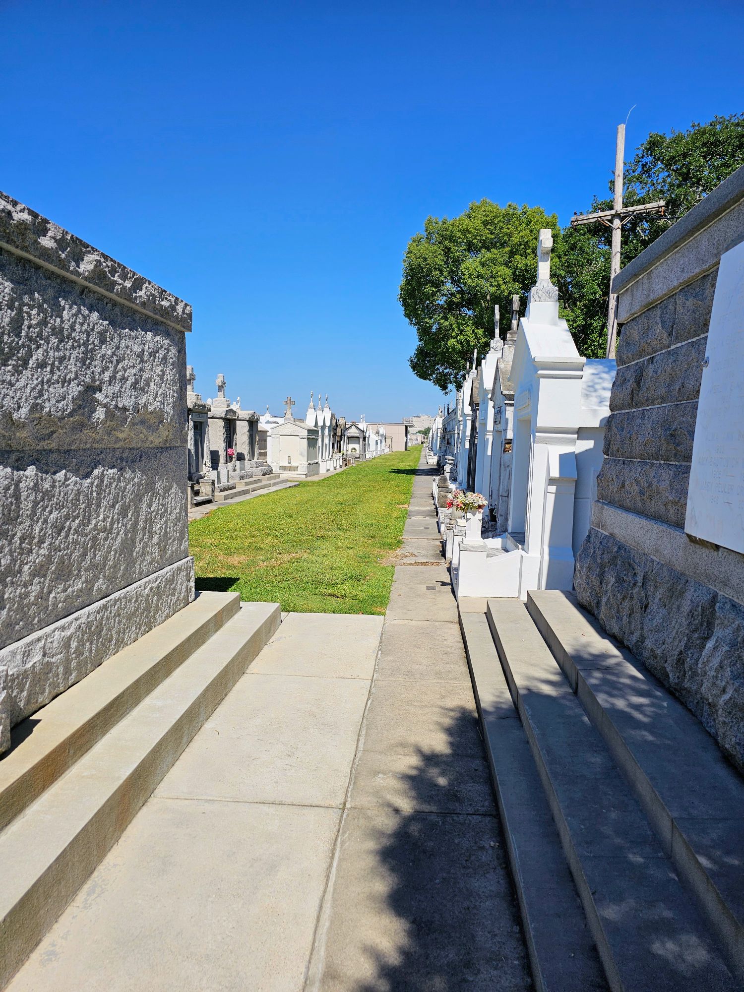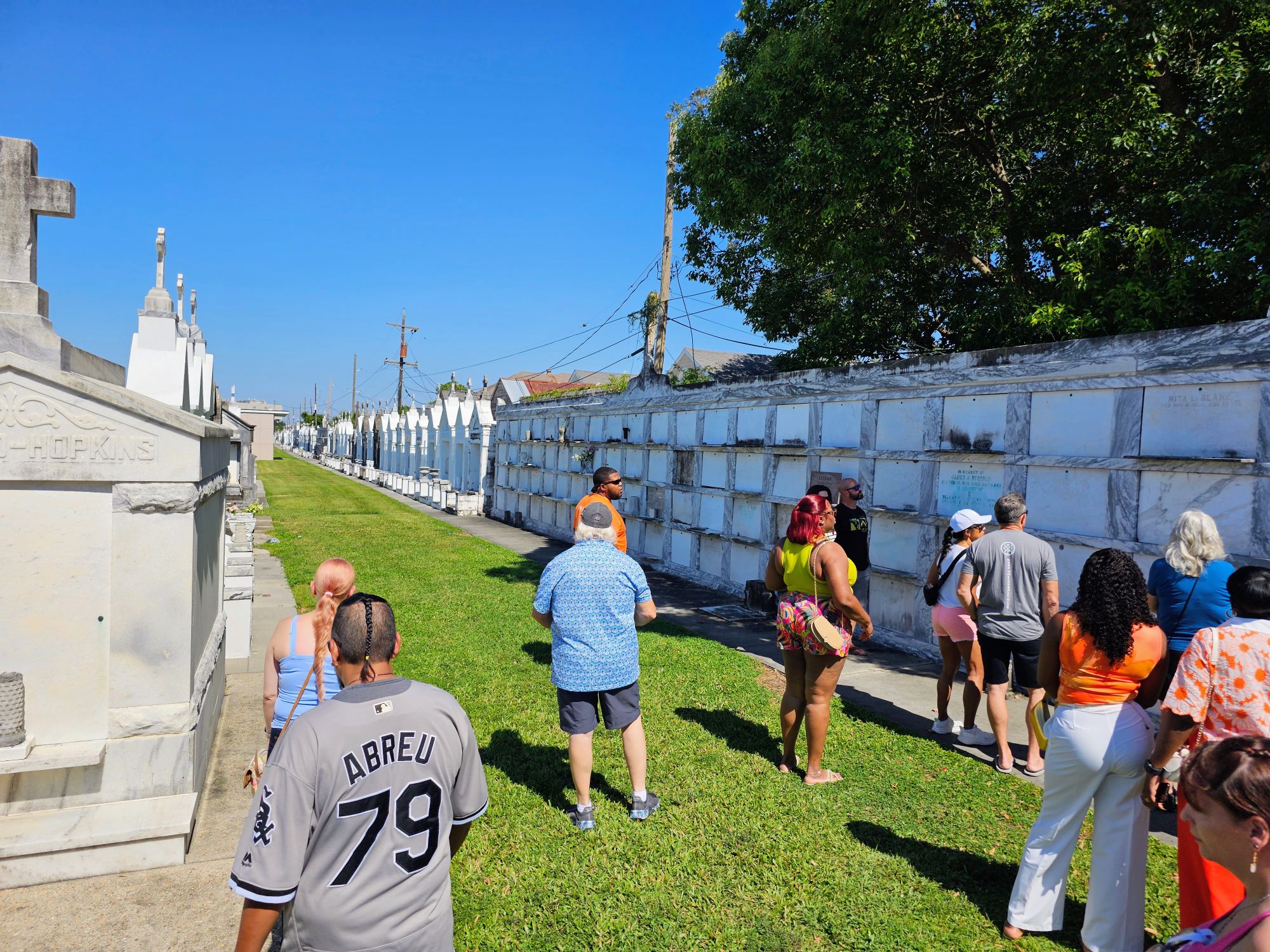 Our guide explained that the reason the graves are above ground isn’t so much about the water table, which is the common belief, but about the Catholic tradition of enclosing multiple people into the same tomb. The tradition is when somebody dies they are placed in the tomb inside a rudimentary coffin, and after at least one year and one day, the New Orleans heat and humidity completely breaks down their body to just the bones. If somebody from the same family dies within that one year, one day period they are placed in temporary vaults like these below.