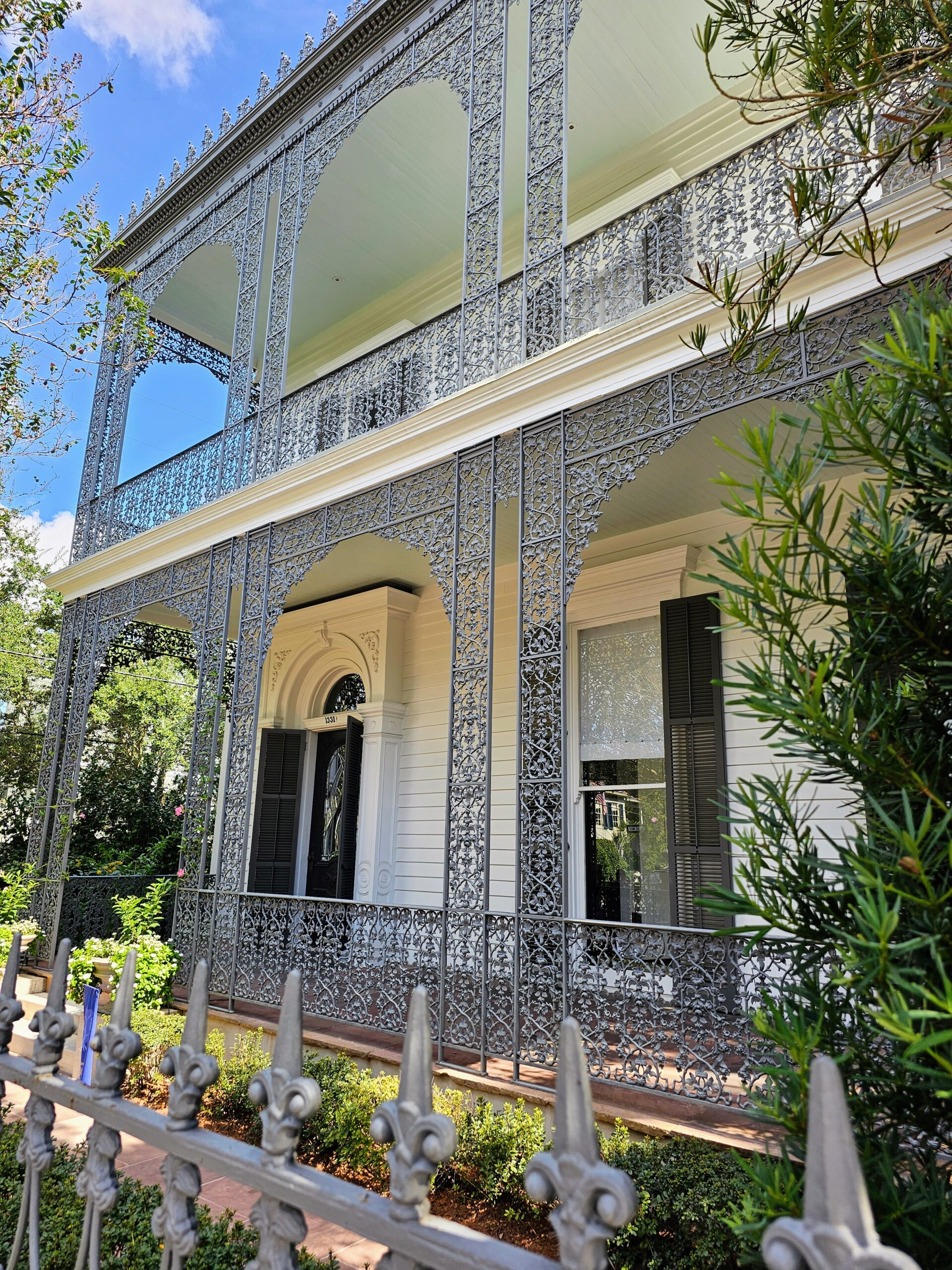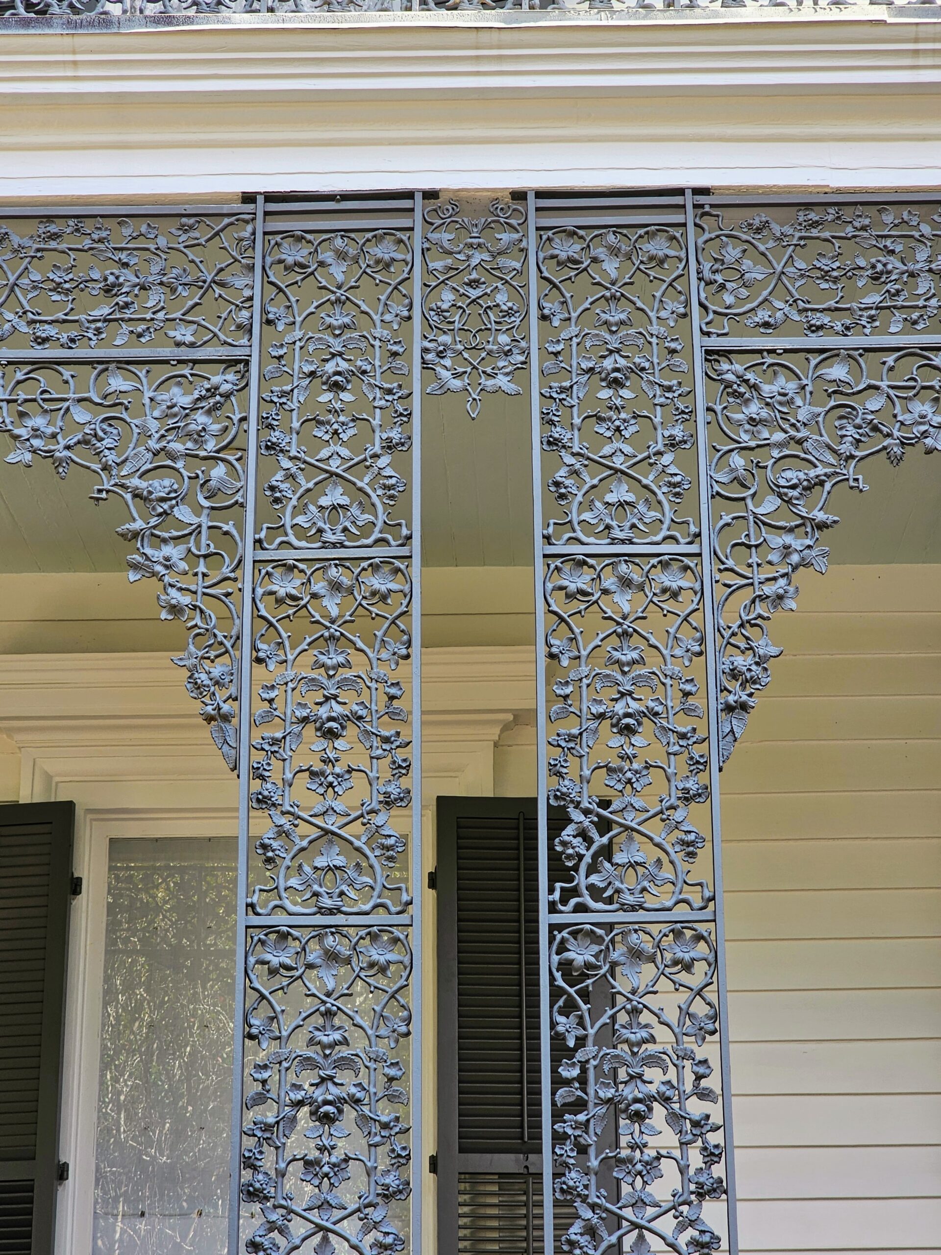 The cast iron was imported from Italy, and was considered the most expensive in the Garden District…until a neighbor bought the same cast iron work, but added features not found here. Love the details!