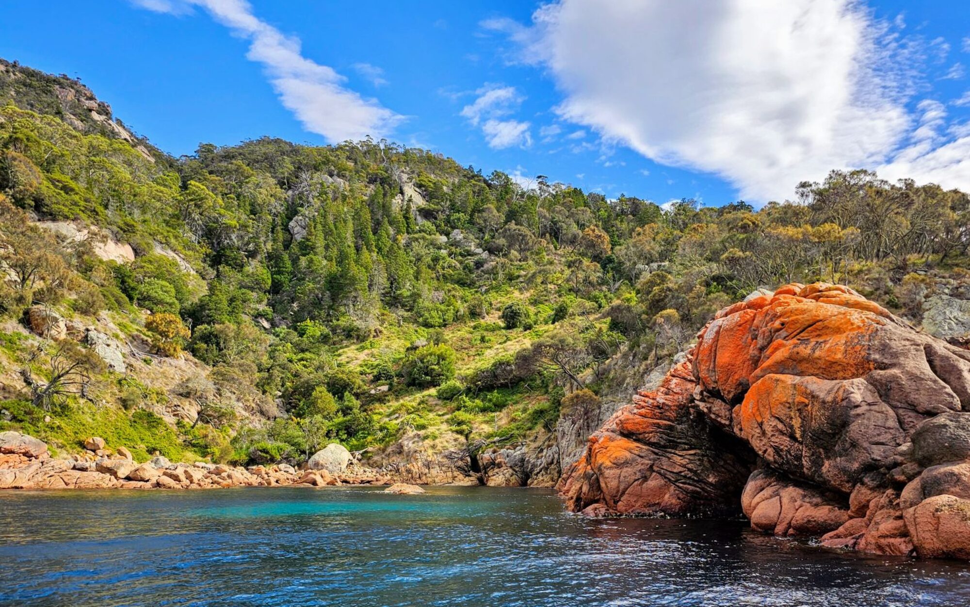 I had arranged for a Zodiac to take me from the resorts beach over to Watson’s Bay to the start of the trail. Here is a shot in front of the beach as I waited for the Zodiac to get ready.