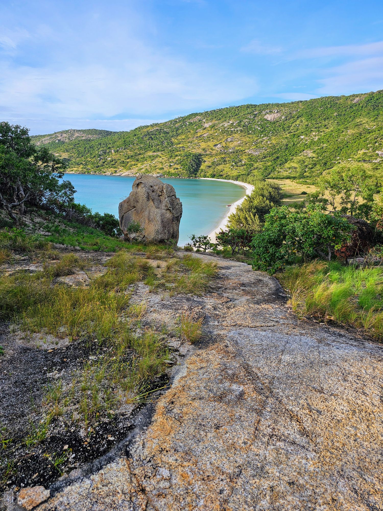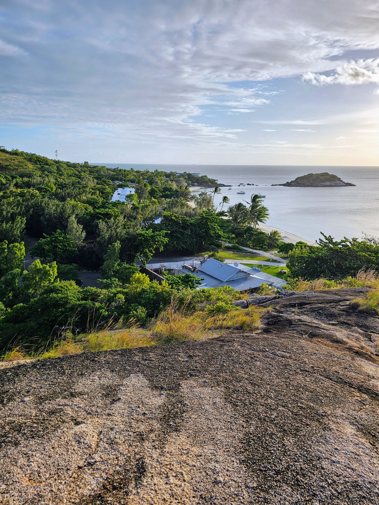 A shot of Lizard Island Resort from about halfway down the trail, with tiny Eagle Island in the distance to the right.